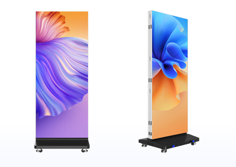 A sleek, foldable display that effortlessly transforms between a large-format screen and a double-sided poster, ideal for retail, trade shows, and events.